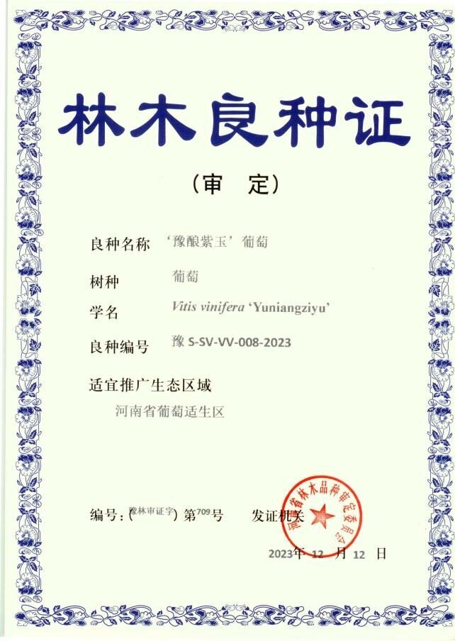 ‘豫酿紫玉’葡萄林木良种证