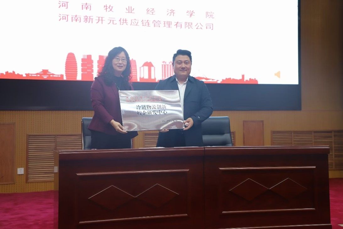 会上,科学技术处处长潘春梅代表学校致开幕辞。物流与电商学院院长曹献存代表承办单位致欢迎辞。潘春梅与线上av新开元供应链有限公司总经理陈世举共同签署校企研发中心合作协议并授牌,物流与电商学院党委书记田景丽为企业嘉宾颁发聘书。来自物流行业、企业、研究中心的与会嘉宾围绕“数智赋能农产品供应链”主题展开分享与讨论。