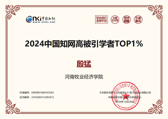 近日,中国知网中国科学文献计量评价研究中心基于中国知网收录的国内学术成果,遴选并发布了“2024中国知网高被引学者”名单。我校物流与电商学院副教授殷猛成功入选应用经济学学科2024中国知网高被引学者TOP1%。