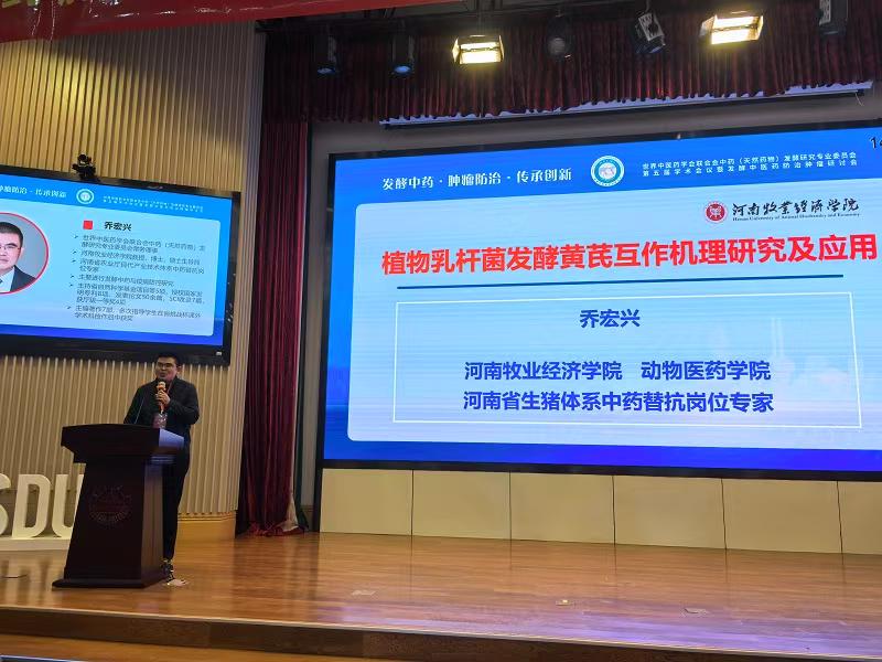 近日,“发酵中药·肿瘤防治·传承创新--世界中医药学会联合会中药(天然药物)发酵研究专业委员会第五届学术会议暨发酵中医药防治肿瘤研讨会”在山东大学召开。我校动物医药学院乔宏兴应邀参会并作主题报告。