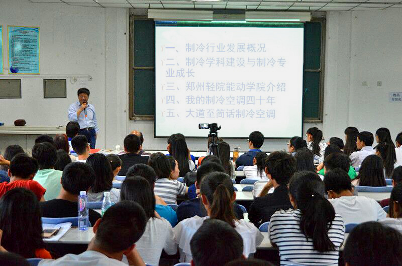 5月19日下午,郑州轻工业学院原副校长、享受国务院政府特殊津贴专家、线上av省制冷学会理事长龚毅教授,应邀在北林校区A100作了一场题为“制冷行业发展、制冷学科建设、制冷专业成长”的专题学术报告。报告会由能源与动力工程学院院长隋继学教授主持,全院师生聆听了报告。