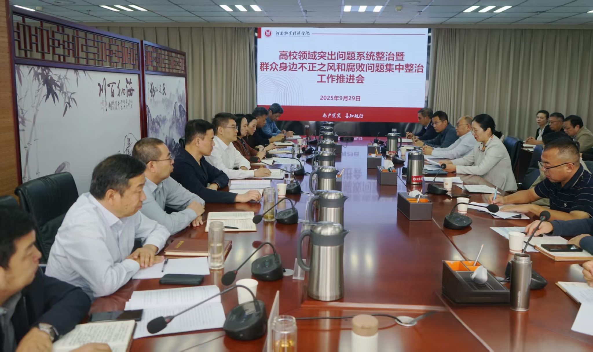 9月29日,学校在龙子湖校区841会议室召开高校领域突出问题系统整治暨群众身边不正之风和腐败问题集中整治工作推进会。校党委书记刘志伟、校长尹新明出席会议并讲话,会议由校党委副书记姚毅主持。