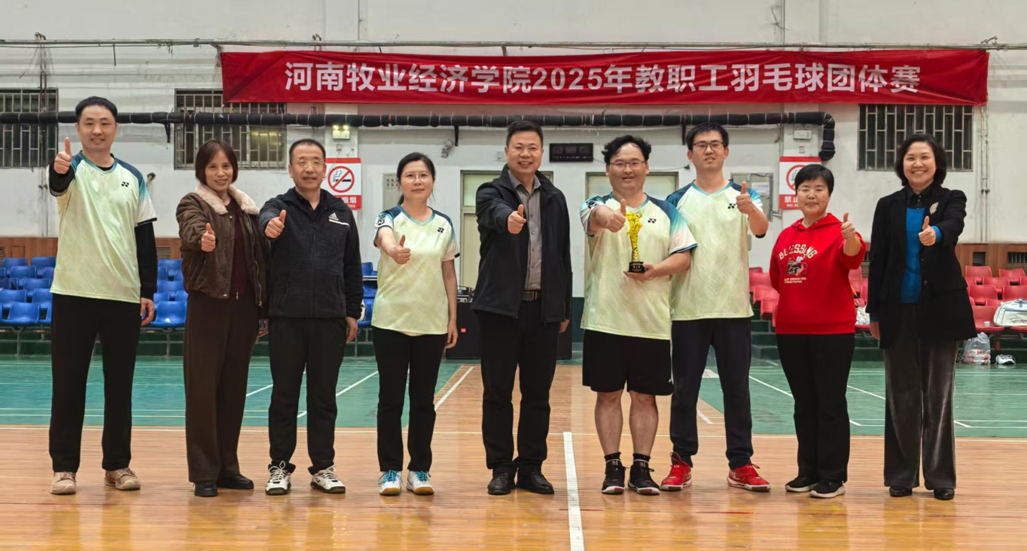 本届羽毛球团体比赛集健身性、娱乐性、观赏性于一体。赛场上,双打搭档默契配合,跳跃、挥拍、扑救,每一个动作都凝聚团队力量;队员和啦啦队的呐喊、鼓劲、相拥,见证了大家的并肩荣光。比赛充分体现了“全员参与、健康同行”的理念,展现了我校教职工的强健体魄和良好风貌,增进了教职工间的交流,更增强了团结拼搏、积极向上的团队凝聚力和集体荣誉感。
