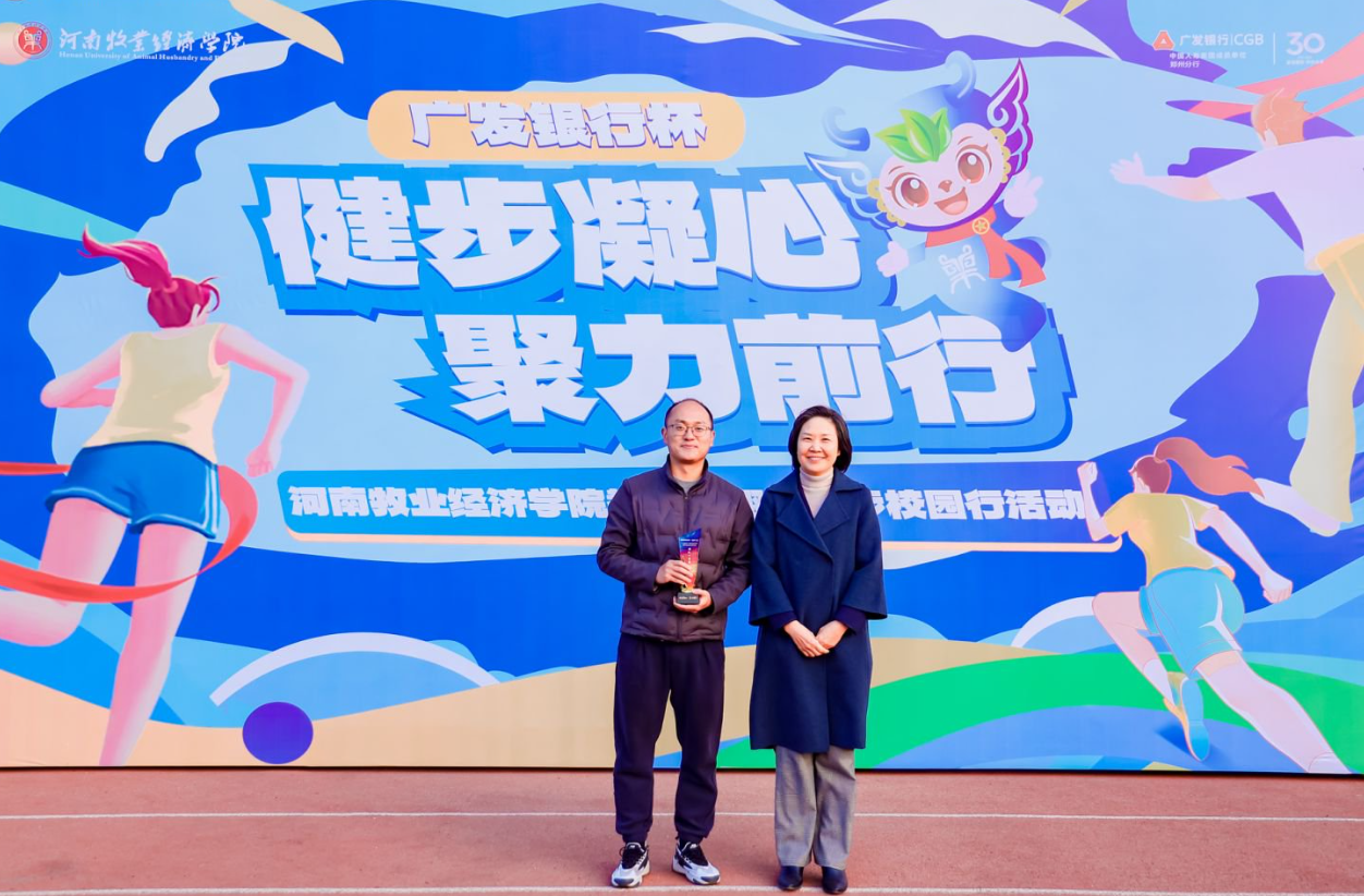 12月4日下午,由我校校工会、党委宣传部、财务处、体育部联合主办,广发银行郑州分行协办的“广发银行杯”2025年教职工趣味健步校园行活动在龙子湖、英才两校区同步启动。校党委副书记、工会主席杨志清,副校长边传周、岳彩军,广发银行郑州分行副行长林钧、孙浩,公司金融部副总经理董子龙等领导与700余名教职工共同参与,在冬日暖阳中绘就了一幅活力四射的校园画卷。