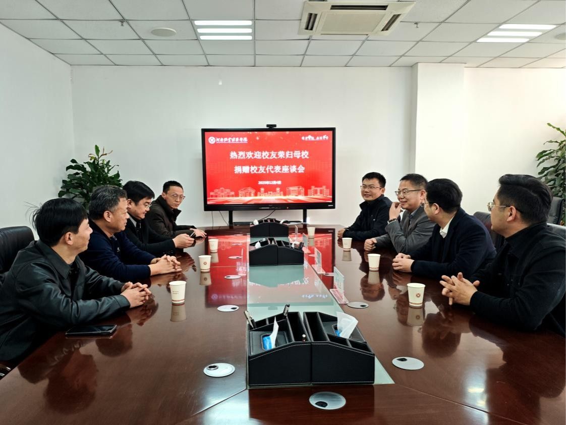 席磊在仪式前与四位捐赠校友进行了亲切交流座谈,详细了解了校友们的企业情况,并介绍了学校近年来取得的发展成果。他强调,校友是学校宝贵的财富,学校的发展离不开校友的持续助力,学校将积极搭建校企合作平台,为校友企业赋能,开创校企共赢新局面。