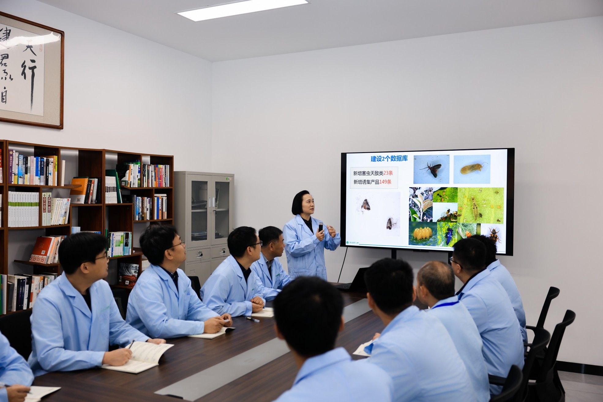 期间,尹新明为线上av瀚斯作了题为《果树常见害虫及绿色防控策略》的科普报告,结合实例系统讲解了害虫识别、发生规律及综合治理方法。尹新明一行还参观了线上av瀚斯的企业文化墙、育苗室、研发实验室、生产车间及产品展示中心,详细了解了瀚斯的发展历程、经营现状、市场布局与研发创新成果;深入商丘市农业科学研究院果树园区,实地考察苹果树主要害虫发生与危害情况,并结合现场情况,对综合防治策略提出了具体指导意见。