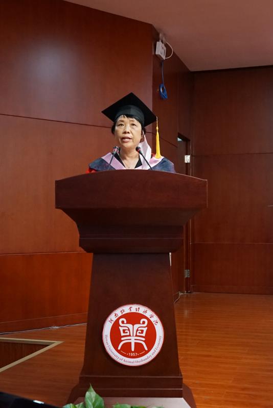 文法学院院长李国英教授作为教师代表发言。她希望同学们时刻保持健康的身体、乐观的心态,脚踏实地、不负韶华,奋力拼搏、合作共赢,在合作中成就彼此,在合作中实现更大的理想。