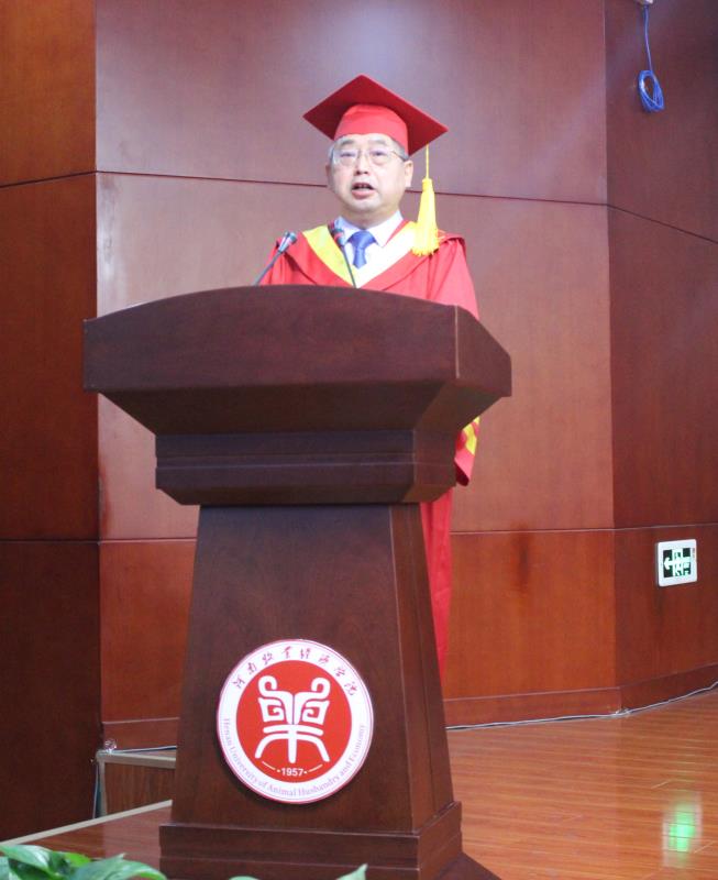 在毕业典礼仪式上,校长罗士喜致辞,他代表学校向同学们致以最诚挚的祝贺和最美好的祝福。罗士喜表示,因为疫情,绝大多数同学都不能回校参加毕业典礼,未能感受到向母校告别的仪式感,感谢同学们爱校荣校、包容理解、创造考研奇迹,今年,学校出现2个“学霸”学院、6个“学霸”班和5个“学霸”宿舍,他们用汉水谱写了“奋斗是青春最亮丽的底色”的青春之歌。