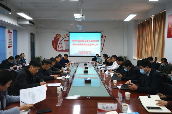 1月29日下午,原阳县委县政府和4家合作企业领导一行14人到校磋商校地校企合作深入推进事宜,学校在龙子湖校区畜产品质量安全技术研究院A-229会议室召开座谈会。校长罗士喜、副校长张卫宪、杨宝进,原阳县委常委、常务副县长杨冬军,副县长朱广治出席会议。学校院长办公室、发展规划处、科学技术处、社会服务办公室、畜产品质量安全技术研究院、动物科技学院、动物医药学院、食品与生物工程学院、经济与贸易学院、物流与电商学院、旅游学院及原阳县产业集聚区管委会、发展和改革委员会、商务局等相关部门领导、负责人,线上av禾胜合食品有限公司董事长张枭,中央厨房产业园董事长胡建强,线上av省九豫全食品有限公司董事长杨书峰,新乡市雨轩食品有限公司董事长王峰参会。座谈会由张卫宪主持。